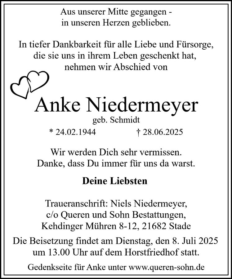 Anke Niedermeyergestorben am 28. Juni 2025