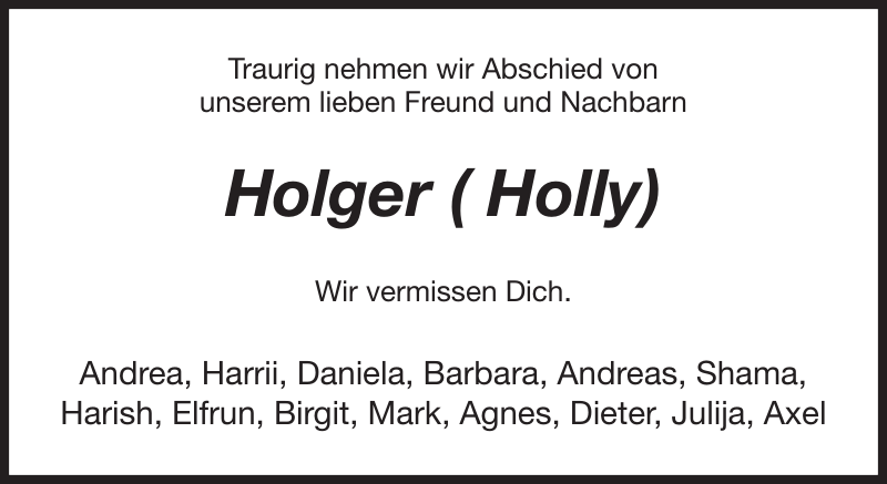 Wir wünschen Euch viel Kraft und Zusammenhalt für die schwere Zeit. Wir sind in Gedanken bei Euch.