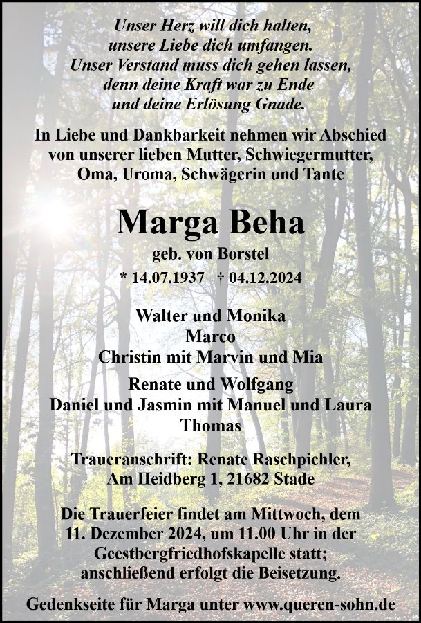 wir wünschen Ihnen für die kommende Zeit viel Kraft und dass es Ihnen gelingt, dankbar auf die positiven Erinnerungen zurückzublicken. Diese Gedenkseite möge Ihnen dabei helfen, Ihre Trauer zu teilen und das Andenken gemeinsam wachzuhalten.